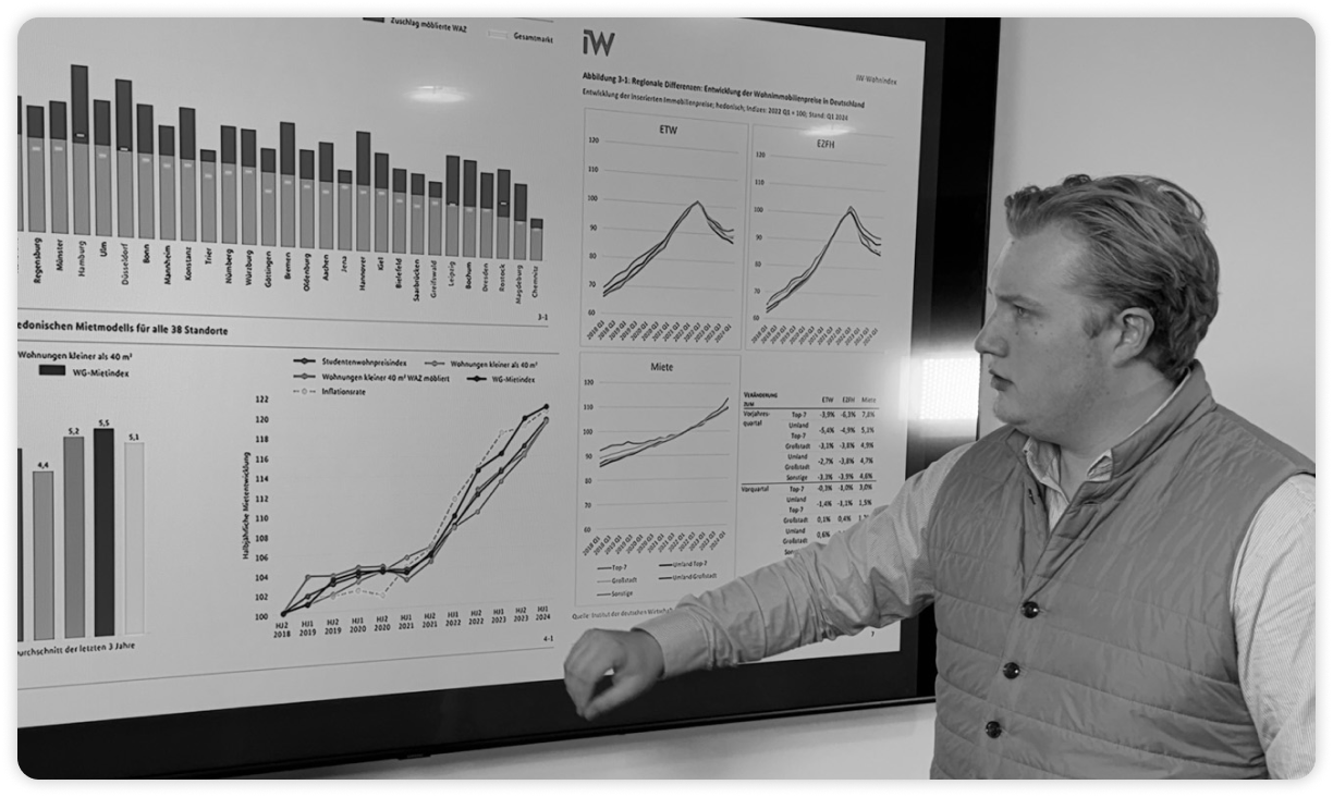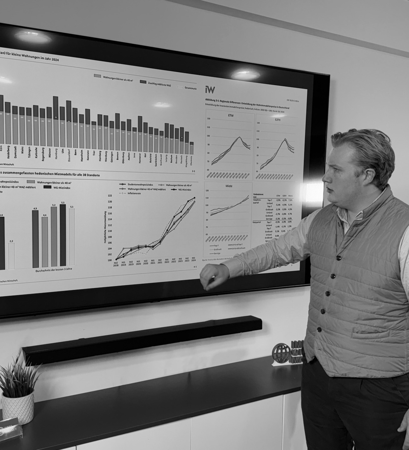 - Standort- & Marktanalyse: Gemeinsame Anaylse der Mikro- und Makrolage, einschließlich der Nähe zu Universitäten, großen Arbeitgebern und der allgemeinen Lagequalität.